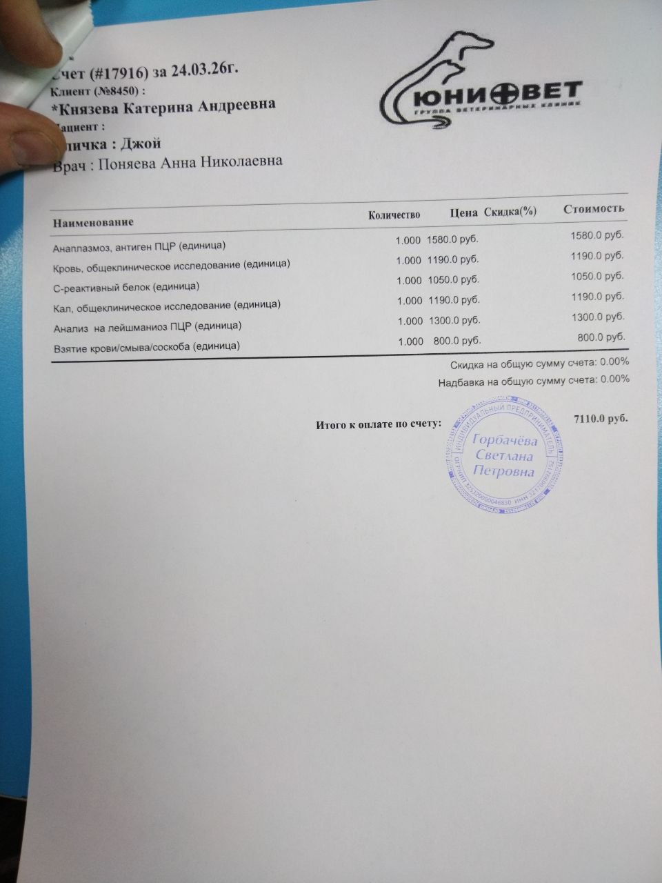 Чек за анализы