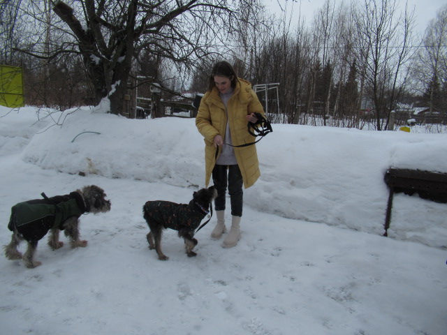 А вчера мы его познакомили с нашим старшим псыной - ризеншнауцером. Он живет у старшей дочери сейчас, раньше жили все вместе, пока старшая не дюзнула во взрослую жизнь. Боялись, переживали, но все прошло достаточно спокойно. На улице вообще все было прекрасно, а когда зашли домой и старший понял, что это тоже идет к маме домой немного впал в ступор. Прошел демонстративно на свой матрас, лег на него, сделал самое нещщщастное лицо и как давай стонать. Стонал долго и с наслаждением. Ну поуспокаивали его немножко, что ж, все время один единственный, кому в попу дули, был, а сейчас соперники появились и нахлебники на безлимит вкуснях))