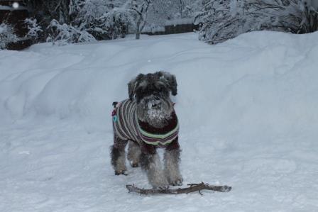Всем привет! Отчитываюсь по Шанечке. Большое спасибо Тане и ее маме за заботу и любовь. За теплый прием. До дома добрались без приключений. В поезде все прошло отлично, Шаня спала на руках или рядышком. Дома сначала робела, но недолго, минут 15. На другой день Шанечка еще сомневалась, ее ли это теперь дом, можно ли уже расслабиться и довериться нам. Но к вечеру уже развеселилась, гоняла с мячиком, настойчиво требовала игр. А сегодня мы ездили на дачу. И сразу стало понятно, что все тревоги ее в прошлом. Носилась по всем сугробам, играла с палочкой, все как полагается. Очень деловой маленький шнауцер))