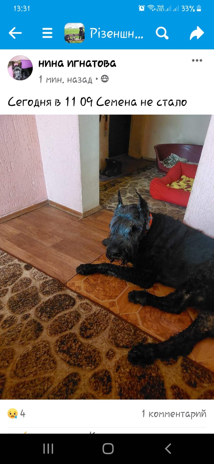 Ох... Сёме мягких облаков под лапы, Нине соболезнования и огромнейшая благодарность за его долгую и счастливую жизнь. Хорошо помню его историю...