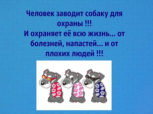 Каждый хозяин, имеющий больше одной собаки, не раз слышал кучу глупых замечаний от прохожих, соседей, зевак. Причем вопрошающий, естественно, сам знает ответы на свои вопросы. Непонятно, вообще, зачем эти вопросы задаются. И так,топ -10 надоевших вопросов и неожиданных ответов на них:
