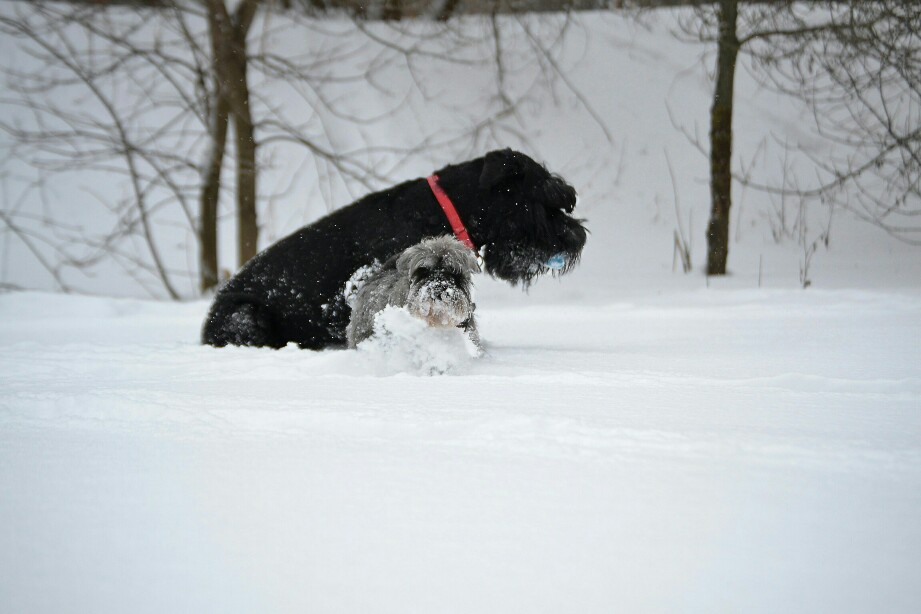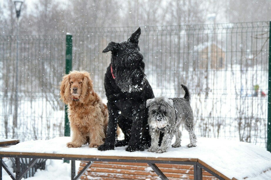 Графушка освоился окончательно, со всеми собаками во дворе подружился. А еще познакомился с девочкой-ризеншей его же возраста, периодически вместе гуляем. Но залезть пытался на маленького бульдожку, причем мальчика, но нам дали отпор :smile2: