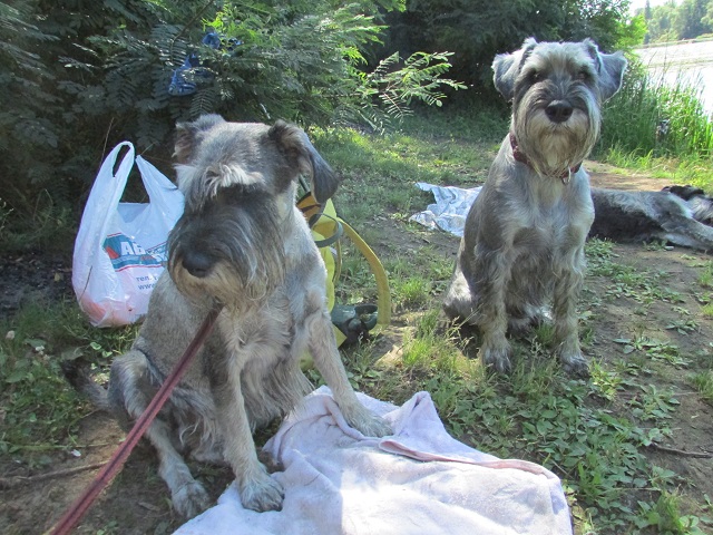 Новые места для купания очень живописны, прямо Левитан -Поленов! И шнауцеры очень красиво вписались