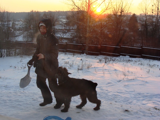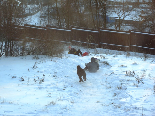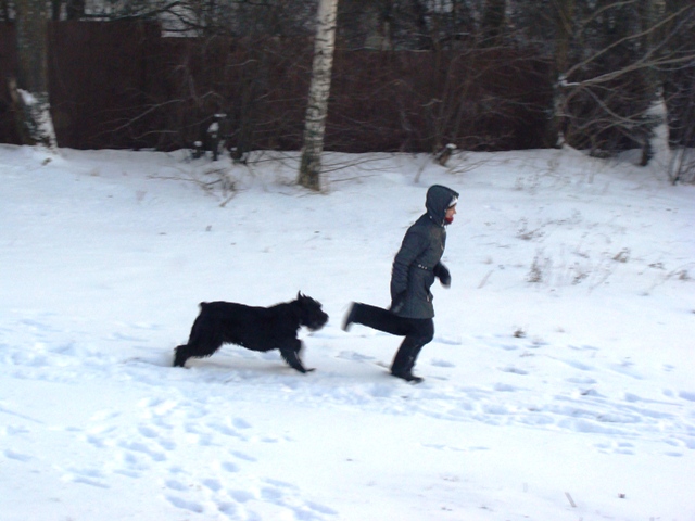 Вчера во время прогулки с женой и дочкой на санках, Майка почувствовала, что жене тяжело тянуть санки в горку и со всей ризеншнауцерской силой вытащила их за 6 сек. Прям посмотрела так, оценилас ситуацию и потянула. Вот.
