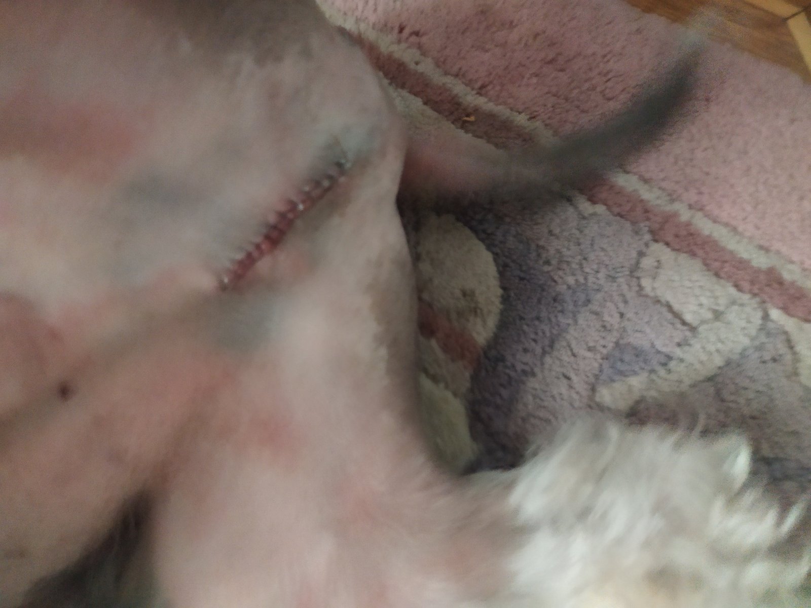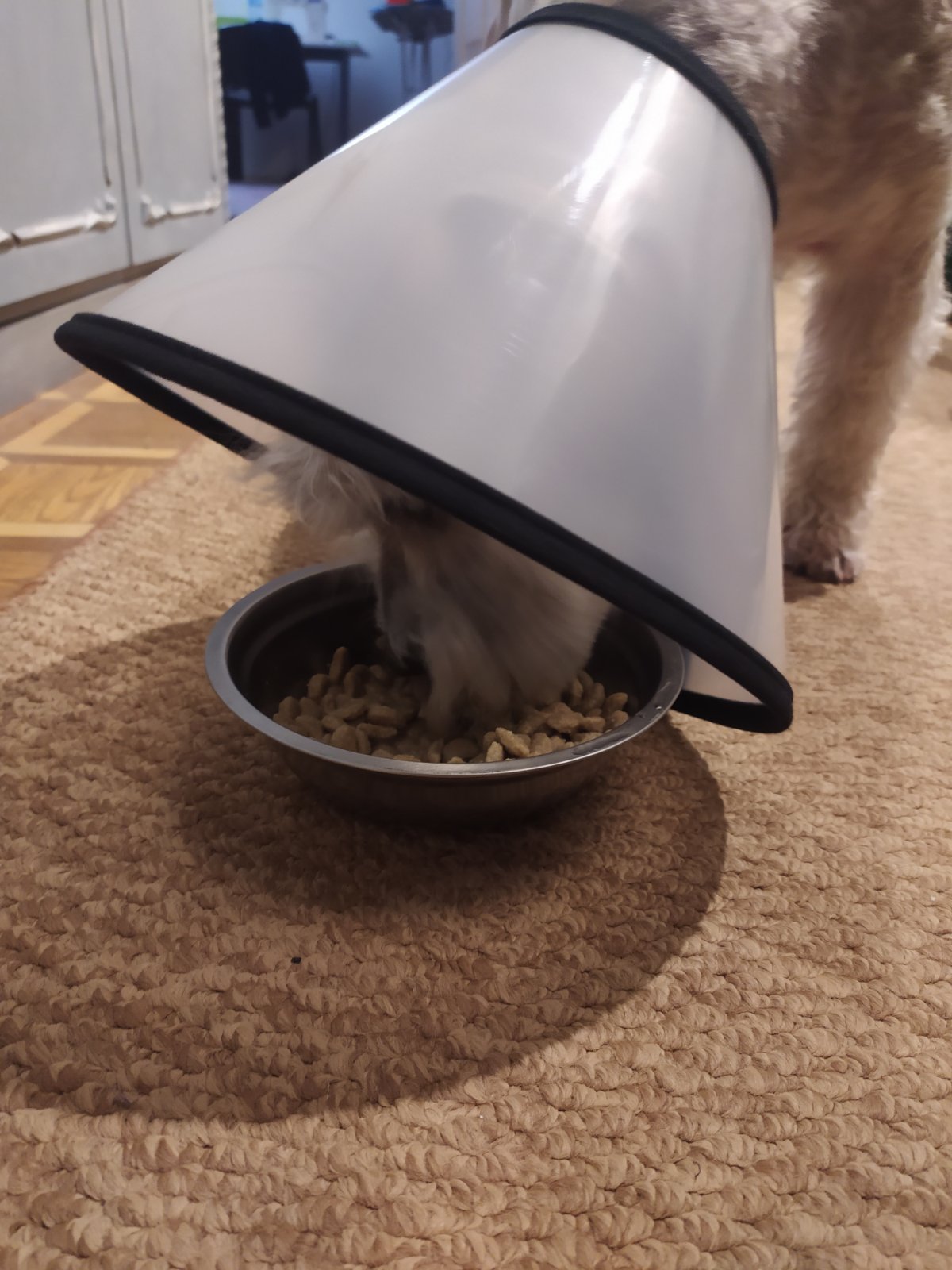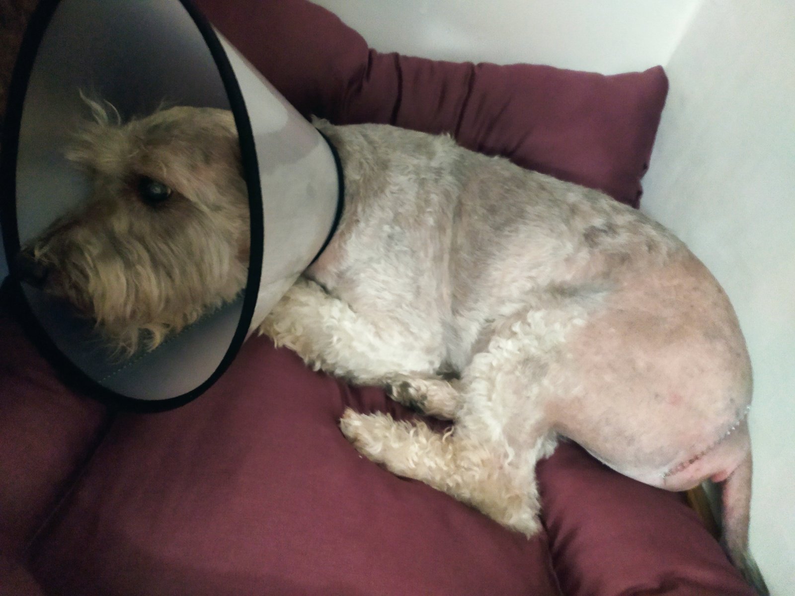 Швы у Сени отлично заживают, аппетит отменный, проблемы, тьфу-тьфу, пока обходят стороной. Самые большие страдания доставили, пожалуй, ветворотник и обритая наголо попа. )))
