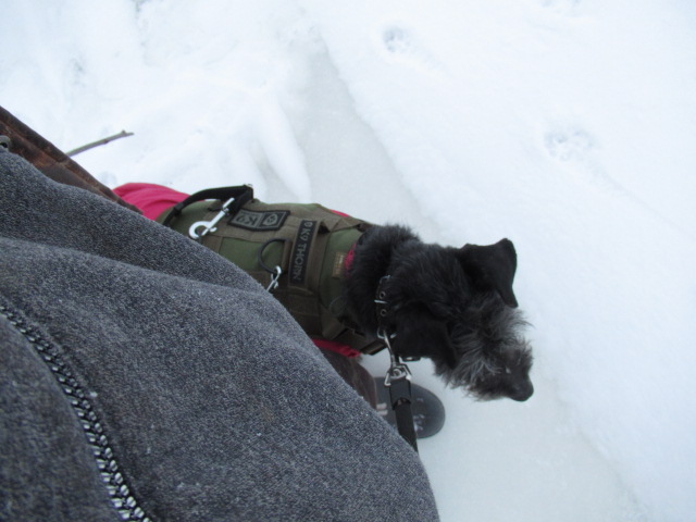 Хотя природное любопытство иногда побеждает и выносит Боню вперёд)),но как только Боня убежав вперёд сам дёргает поводок ,то сразу вот-- и Боня снова уходит мне за спину и ждёт очередного прилива то ли храбрости, то ли любопытства)) И прилив приходит- Боня сегодня даже бараночки на прогулке ел!!!( вчера не стал)