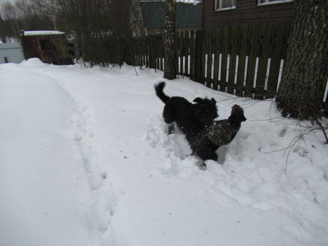 И уже почти готов играть с самой безопасной собакой))) А вот когда Боня гуляет один- он ничего не боится!!)) Он смело лезет в самые глубокие снежищи, и взбирается на самые высокие сугробы!!!