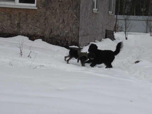 Боня играет с Тёмой!!! Носятся по участку как оглашенные!!