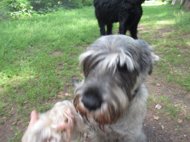 Еще познакомился с йорками дочери и пожилым дворовым псом. Йоркам Гранд понравился, пожилому псу нет. Ну, вместе им не жить, я так понимаю, присутствие Гранда дедушку сильно не будет расстраивать.