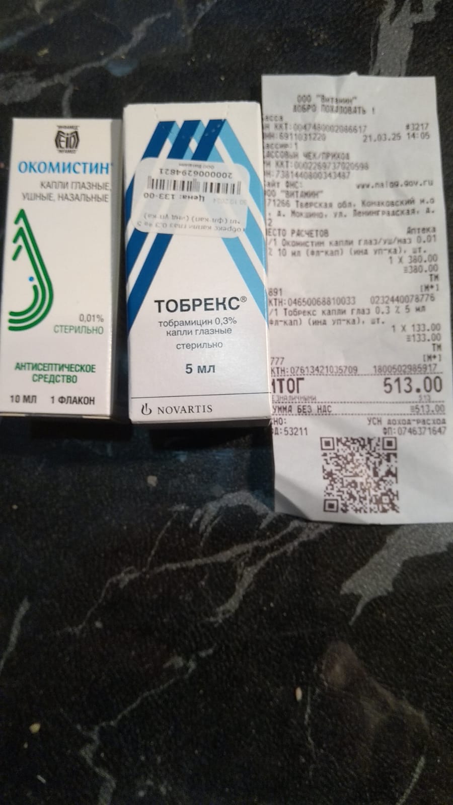 Глаза сильно текут, без гноя. Вернули капли. Если не уйдет, надо доехать до офтальмолога еще разок.
