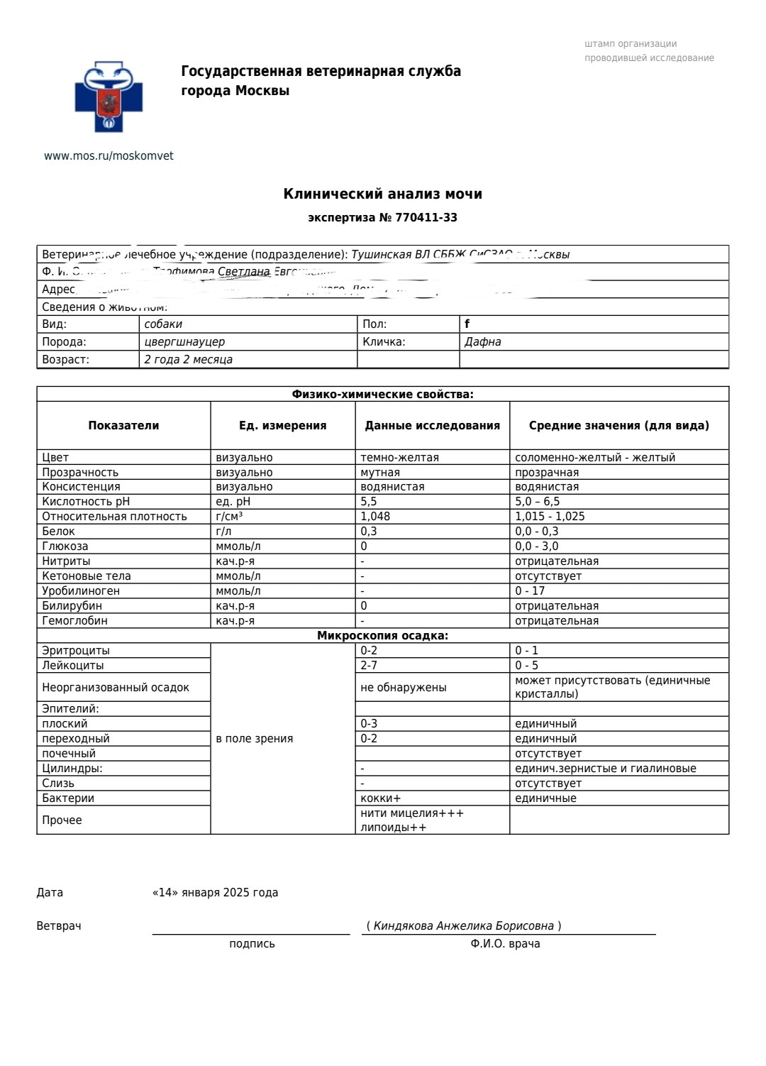 Анализ мочи Рафа (числится Дафной, но это Раф)