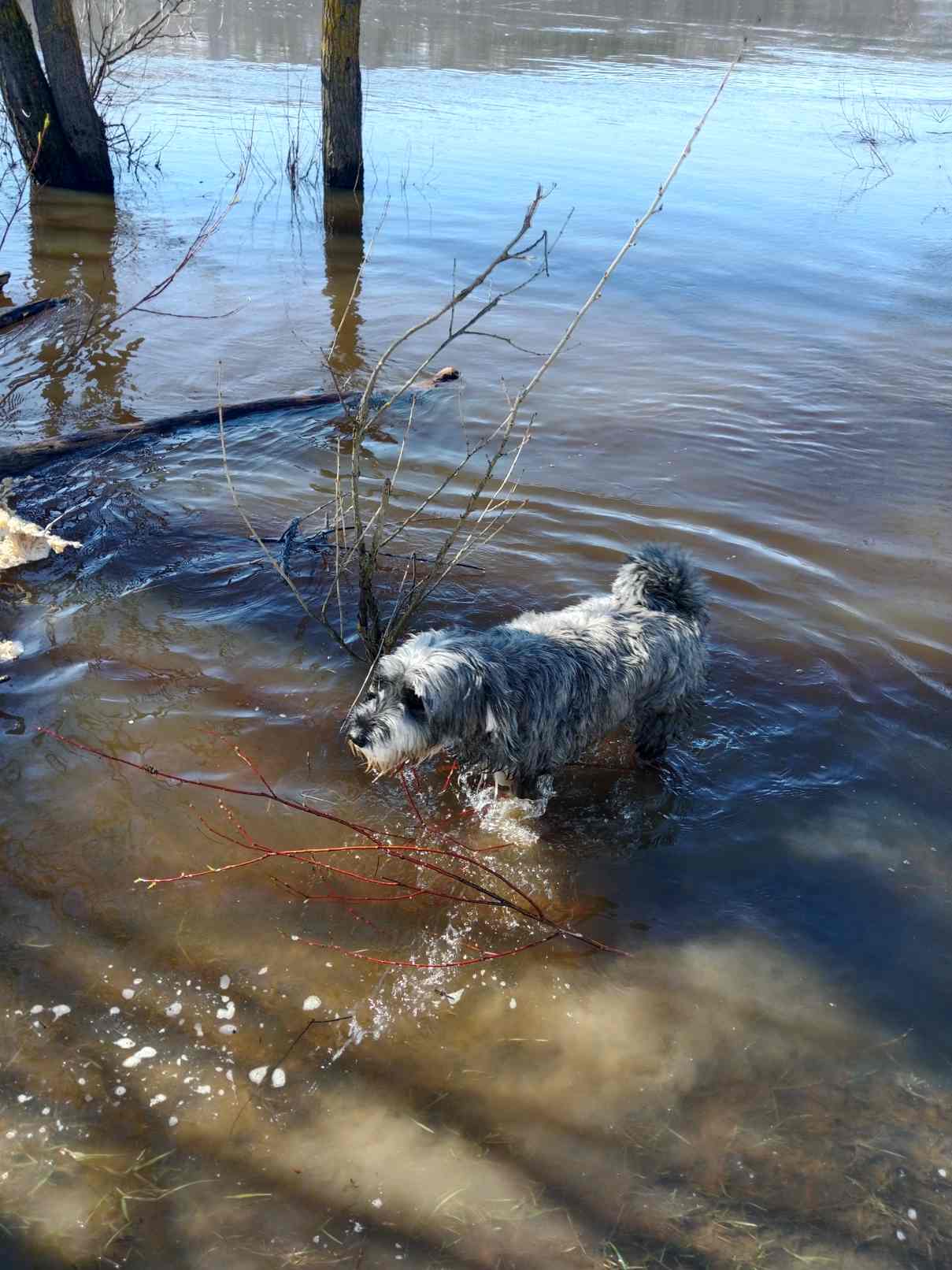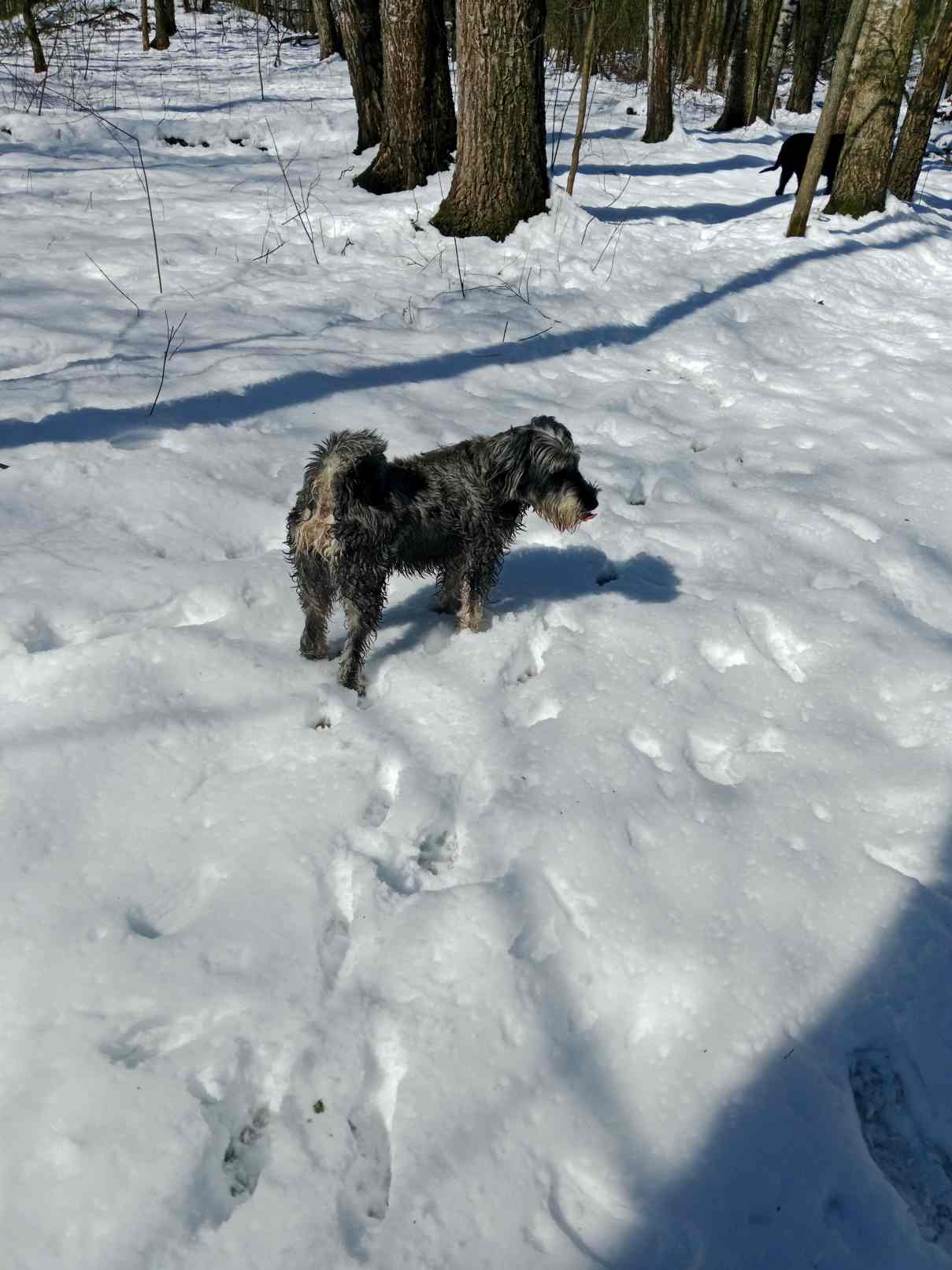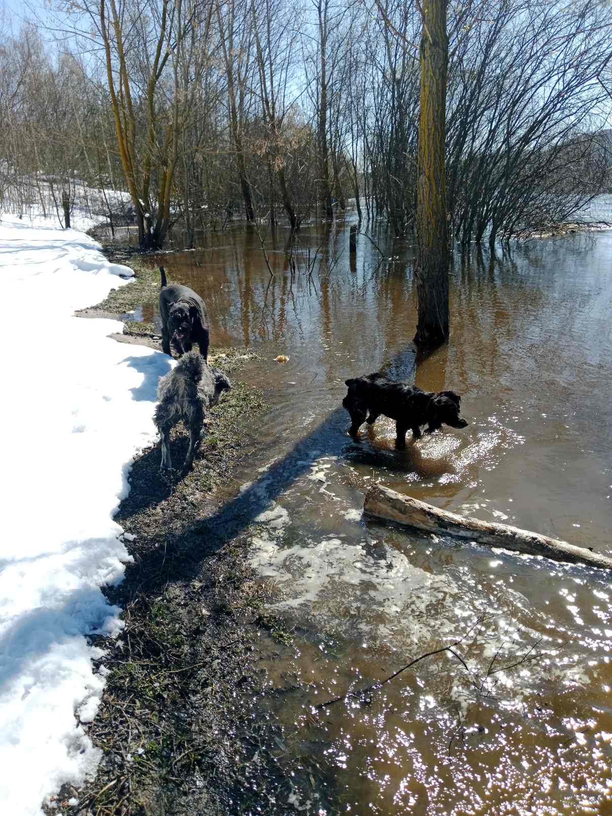 Серая дама сегодня активно гуляла за городом, носилась аки горная серая коза вовсе стороны, топилась в Оке, прыгала по овражкам, кусала в речке бревно, не убегала, держалась стаи, подзывалась. 9 км как с куста, ещё готова повторить. Воды не боится, мышей выкапывает, дорожки сама выбирает, как будто всё знает.