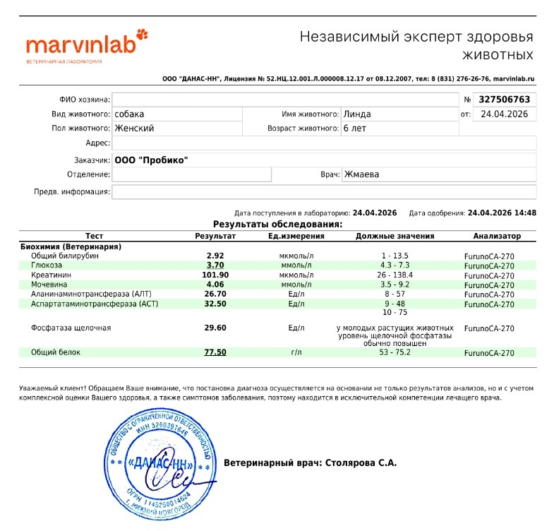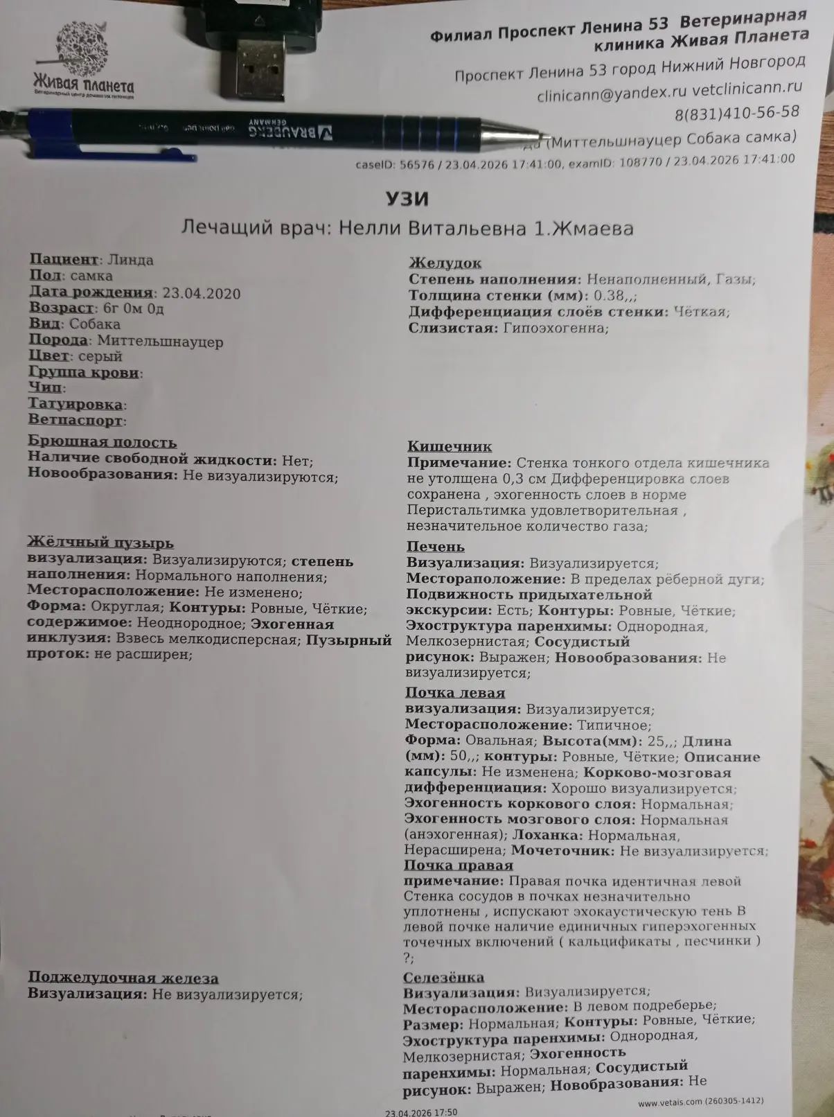 Вес 18,5 кг, Линда вела себя отлично, "собака-всех люблю, всё можно". Матку на узи не нашли, искали долго. В остальном всё хорошо. Небольшая кальцификация в рамках возраста и слегка холецистит (наверное, борщи с майонезом даром не проходят).