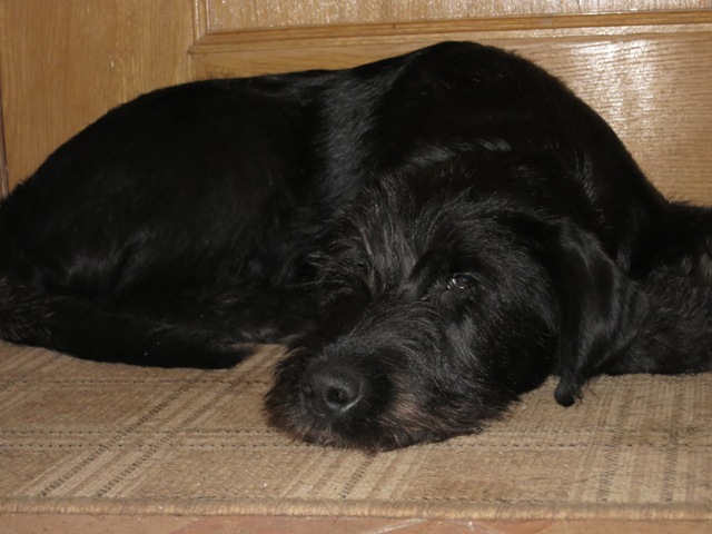 А еще Антошка уже дом сторожит ) Лежит на коврике у входной двери ) Место выбрал сам.