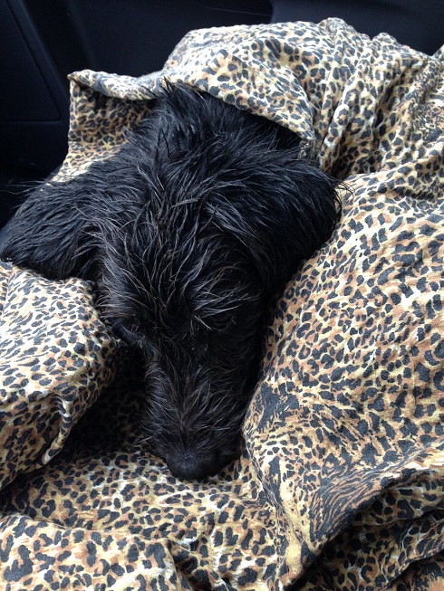 Я пыталась поправить на сидении простынку, на которой Феня ездить изволит, а Феня в этот момент пыталась на сидение запрыгнуть и ей ни фига не мешало то, что я занимаю своим шикарным телом весь дверной проём машины