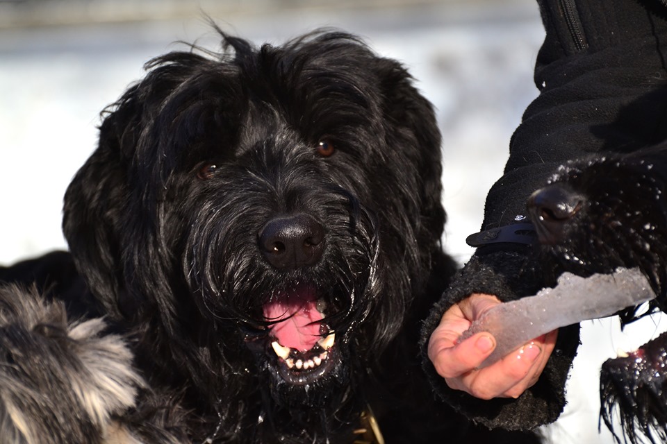 Тёма,он конечно жадина, мячик захапал и носится с ним,дразнит всех.А Лёльке мячика тоже ой как хочется))И сумела таки Лёля уговорить Тёму, не устоял О.Тяпка перед женским обаянием)) И показала Тёме ЧТО надо делать с добычей)) Постольку поскольку мячик оказался легко рвущимся,мне пришлось отжать "добычу" у обоих......мячик был выброшен, взамен выдан другой- собачий... Который Тёма тут же прихватил,удобных верёвочек у этого мячика нет и Лёля, поняв что , нет верёвочек -нет шансов, и отнимать не стала.....А игра не интересна если никто не отнимает)))) Взяв мячик Тёма пошел к Лёле....и тыкал этим мячиком в Лёлину морду, и так и эдак, но обиженная Лёлька только отворачивалась гордо задрав голову....а потом , демонстративно выковыряв из сугроба ледышку пошла её грызть..ну не за что было мячик прихватить((( даже Лёлькиной щучьей пастью.....