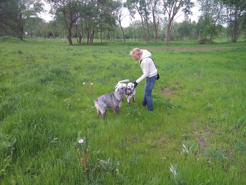немного лета))) мы нашли постоянного друга по прогулкам - годовалого кобеля далматина Германа, сначала воспитывали, теперь дружим, Гера несется не разбирая дороги, Янчик - по тропинкам, но если найдут грязь по колено - то обязательно вдвоем))) сначала сбросят пар, потом идем в большую компанию - продолжать общение)))