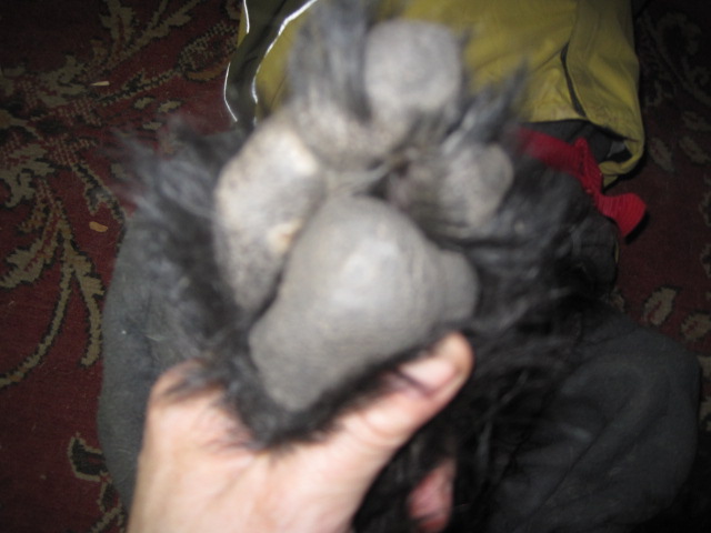 Сегодня , после прогулки, при раздаче приятных бонусов, Тёма ОГРЁБ от Мухтара...по полной...за всё...видимо накипело.....до визгу....правда обошлось одной малюсенькой царпкой на той самой "тяпке"(всё-таки оборонительная реакция у Тёмы,спасибо трудной жизни.на высоте), обиду свою Тёма долго и яростно вымещал на подвернувшейся палке ...Зато при осмотре были найдены и удалены колтуны в ушах, Тёма терпеливо дал их выщипать....видимо в сравнении с разъярённым Мухом всё остальное просто фигня...