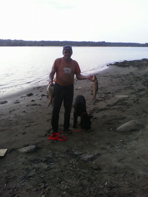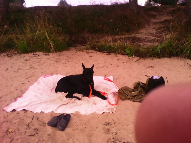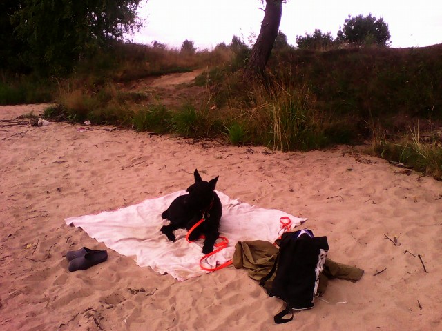 Джони беспокоился пока его вели, но потом понял, что мы рядом! Начал поскуливать, когда я ухожу....Плавать не умеем. На Волгу смотрел, как на космический корабль. Заходить отказался!!!!! Но постепенно осмелел( сыр работал!), Начал входить со мной и бегать по воде.