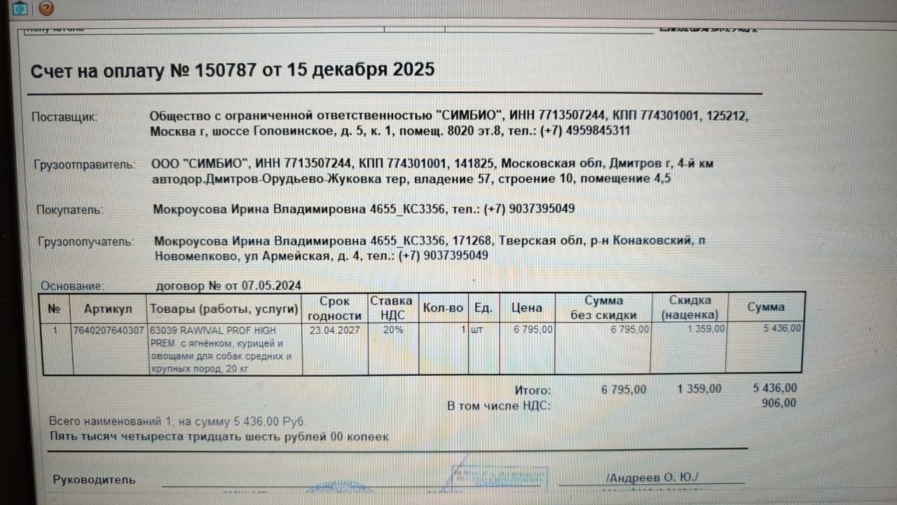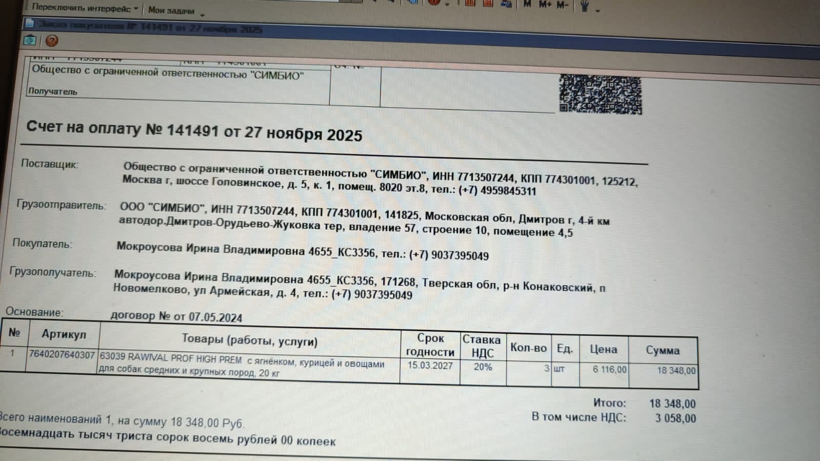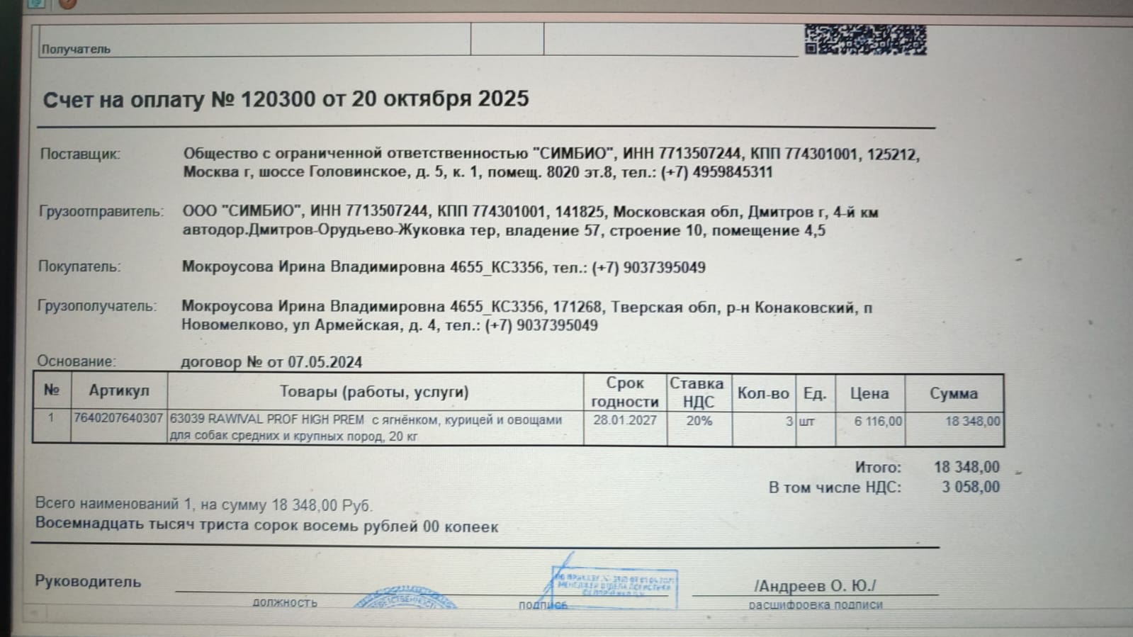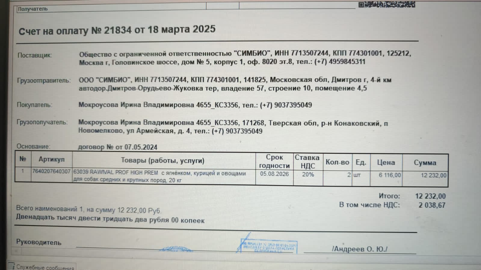 Корм Мираторг Найсу и Бартосу ( чек выложен позже, по факту 15.04.25)