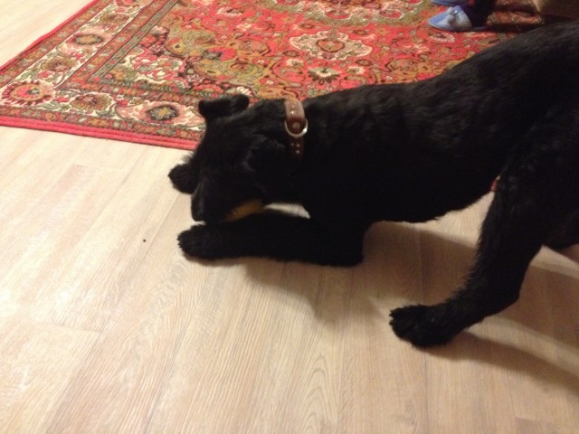 Чарли постепенно осваивается на новом месте, на попугая внимание перестал обращать (правда пока выпускать из клетки боимся), кошек дома почти не бывает, поедят и сразу на улицу, а когда остаются дома забираются повыше. Ходит за нами с мужем хвостиком, куда мы туда и он. Купили ему глазные капли ципрвет, капаем с боем, то муж его держит я капаю, то наоборот. Заметили что во сне иногда очень жалобно скулит (видимо что-то плохое сниться). Мячики которые нам Ася подарила уже сгрыз одни веревочки остались.... Очень любит гулять, пока идем на поле собака спокойная, с высоко поднятой головой идет, но стоит нам прийти его как будто подменяют начинает бегать, прыгать все время наровит в сугроб забраться. Фото выложу вечером, т.к. сейчас на работе.