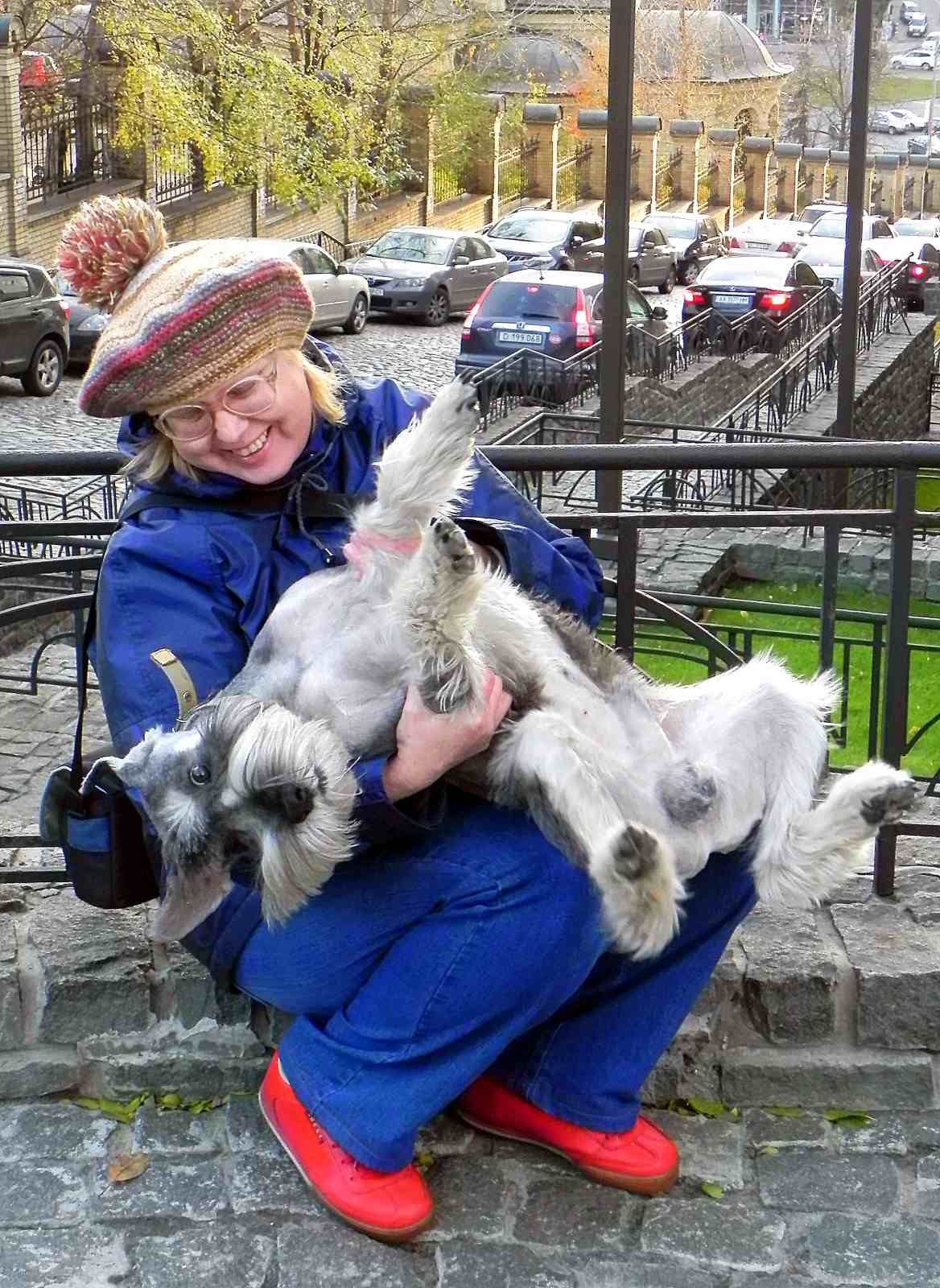 Вчера вечером познакомились на прогулке с девочкой и ее родителями из соседнего дома. Всё общение с Вилей девочка на него погавкивала на разные лады - что с нее взять, маленькая, ей года четыре. То наклонится к морде, полает с подвыванием, то по туловищу погладит. Погавкали, погладились, полялякали, разошлись гулять дальше - они на детскую площадку, мы - дальше дворы проверять, все ли клены опали, все ли листья сгребли, а то мы разгребем.Светлана А писал(а):вам смешно... а на нас реально вот так девочка лаяла... причем, лет 7-8... а родители стояли и смеялись...