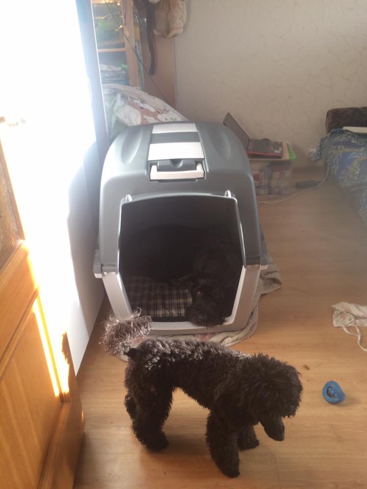 Вообще Хана сейчас вполне в состоянии постоять спокойно пару минут. Но я бы просто закрепила поводок на талии( я дам как ра спаренный поводок, который позволит это сделать. Да, будет не сильно удобно, но зато руки будут свободны и она никуда не денется. Колеса крепятся легко, потренируемся перед вылетом )L.K. писал(а):Меня волнует момент приделывания колес к клетке. Ведь мне выдадут клетку БЕЗ колес, а сдвинуть ее с места без них я не смогу. Если я выпущу Ханну и буду держать ее одной рукой на поводке, то другой рукой я должна буду либо приделать колеса, либо разобрать клетку для погрузки. Это реально?