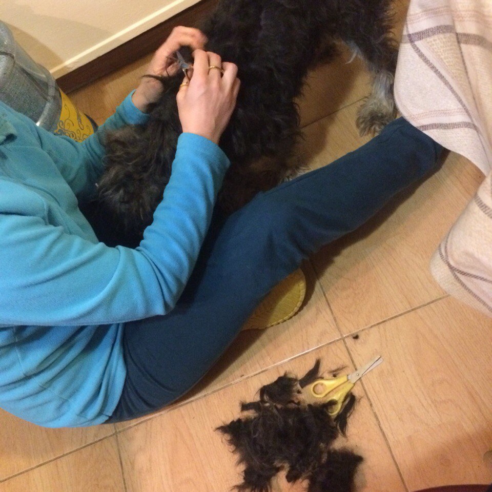 ко мне временами приводят цверго-валенки и просят сохранить хоть какую красоту по породе. Я, конечно, только "за" сохранение красоты и делаю так: берется бальзам для волос (человеческий), разводим водой, заливаем в пшикалку. Чуток укорачиваем длину уборного волоса на руках-ногах (оставляю 3-4 см, вполне нормально потом выглядит). Далее - колтуны разрезаем в направлении от кожи собика наружу (чтобы не порезать собу), 1-3 разреза, зависит от величины колтуна. Потом брызгаем на колтуны разведенным бальзамом, не скупимся, пусть промокнут, ждем минут 5 и потом начинаем расчесывать.avdeec писал(а): у нас нет одежды для него, поэтому обрить пока не получится. сидим сейчас дома и колтунищи вырезаем, чтобы хоть как-то облегчить валеночье на теле. дается пока, хоть иногда и порывается уйти в ночь)