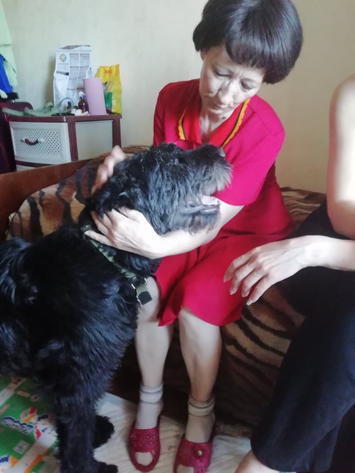 С прошлого визита прошло дней 6. Что удивительно, она была рада меня видеть: сразу поднялась, хоть вставать ей нелегко, подошла, обеюхала, лизнула, настойчиво потребовала почесушек