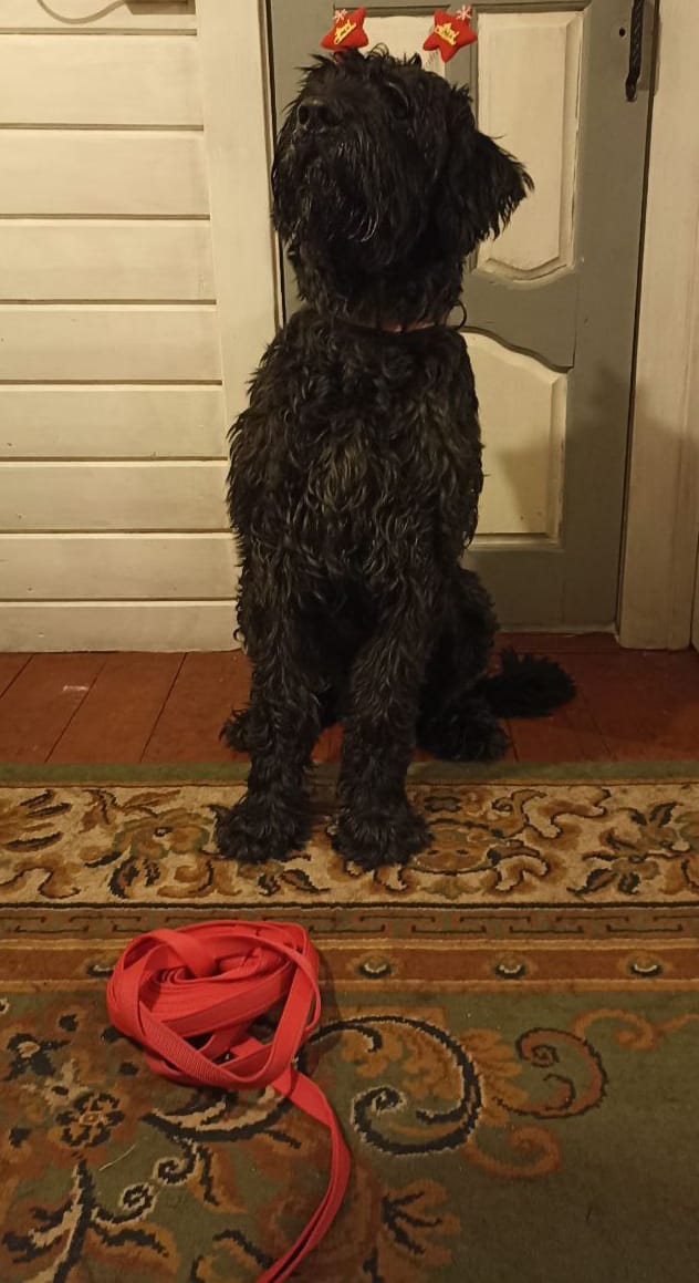 А это подарок Арчи к Новому году от Фонда! То, что он хотел получить-10 -ти метровый поводок! Спасибо!