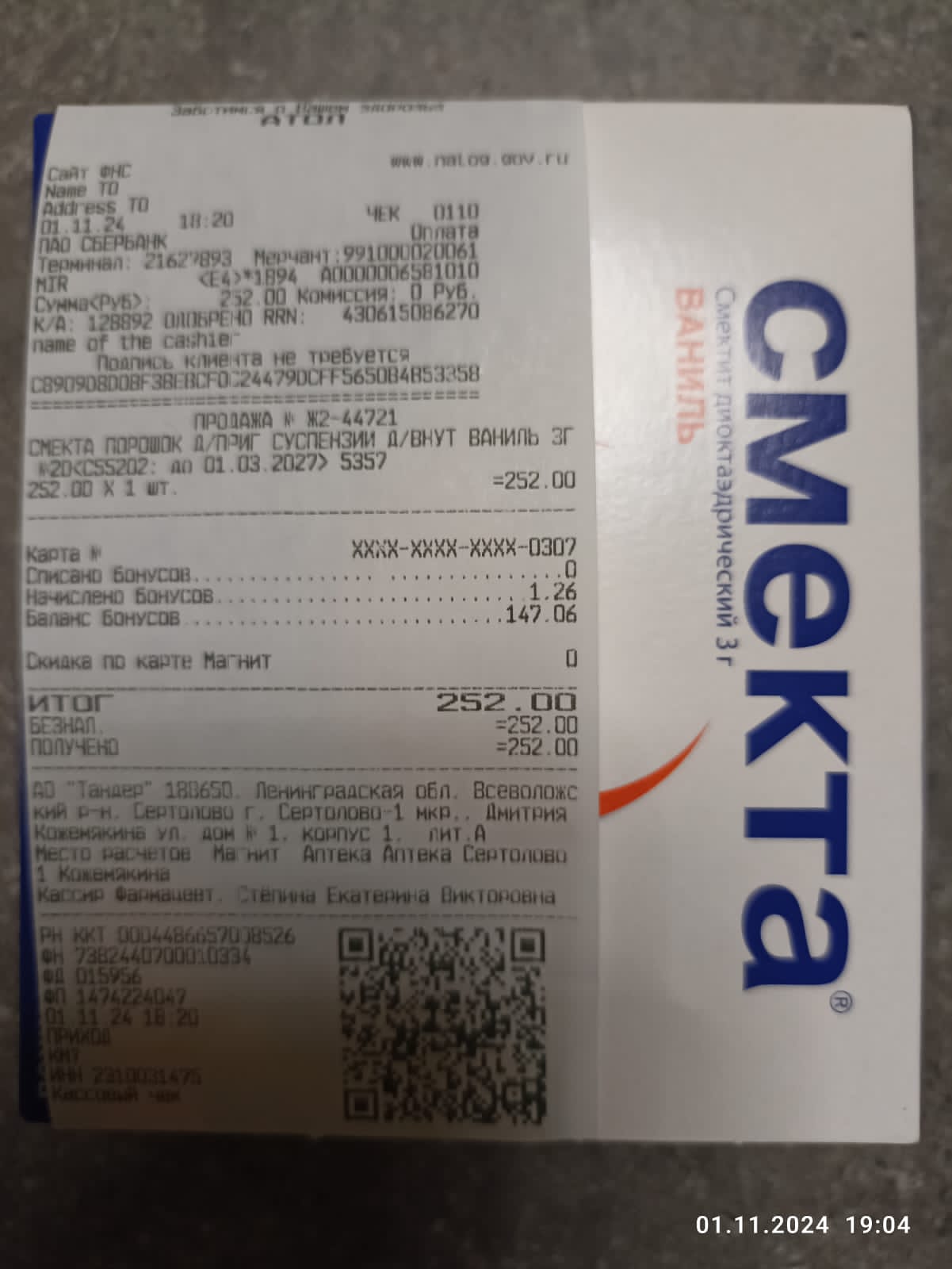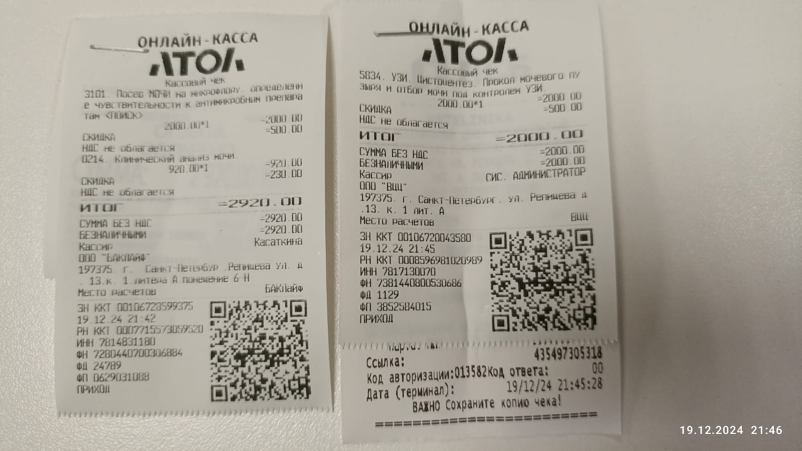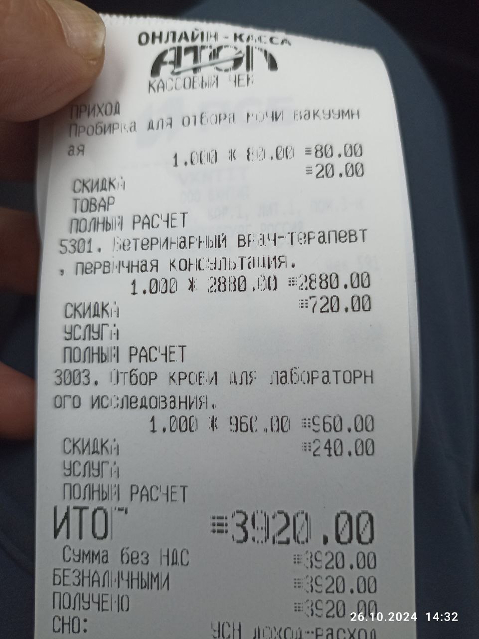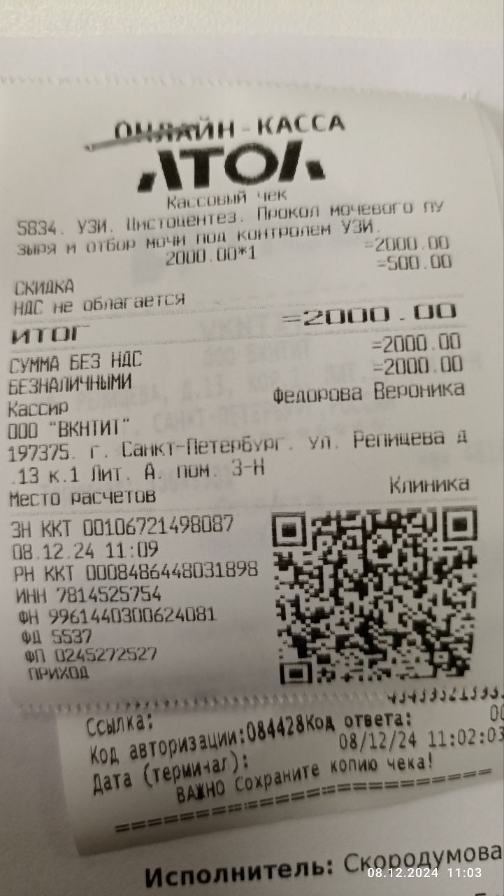Чек за визит к неврологу, выписка в регистратуре.