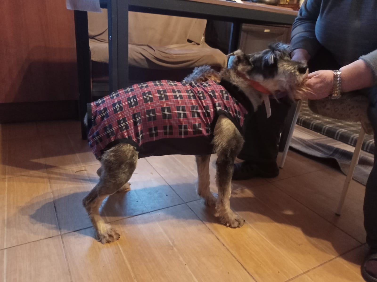 Выданную попону утром торжественно порвала....спасибо есть еще подарок от Маши (Рафа), без завязок, на кнопках....одели ее. :flowers: