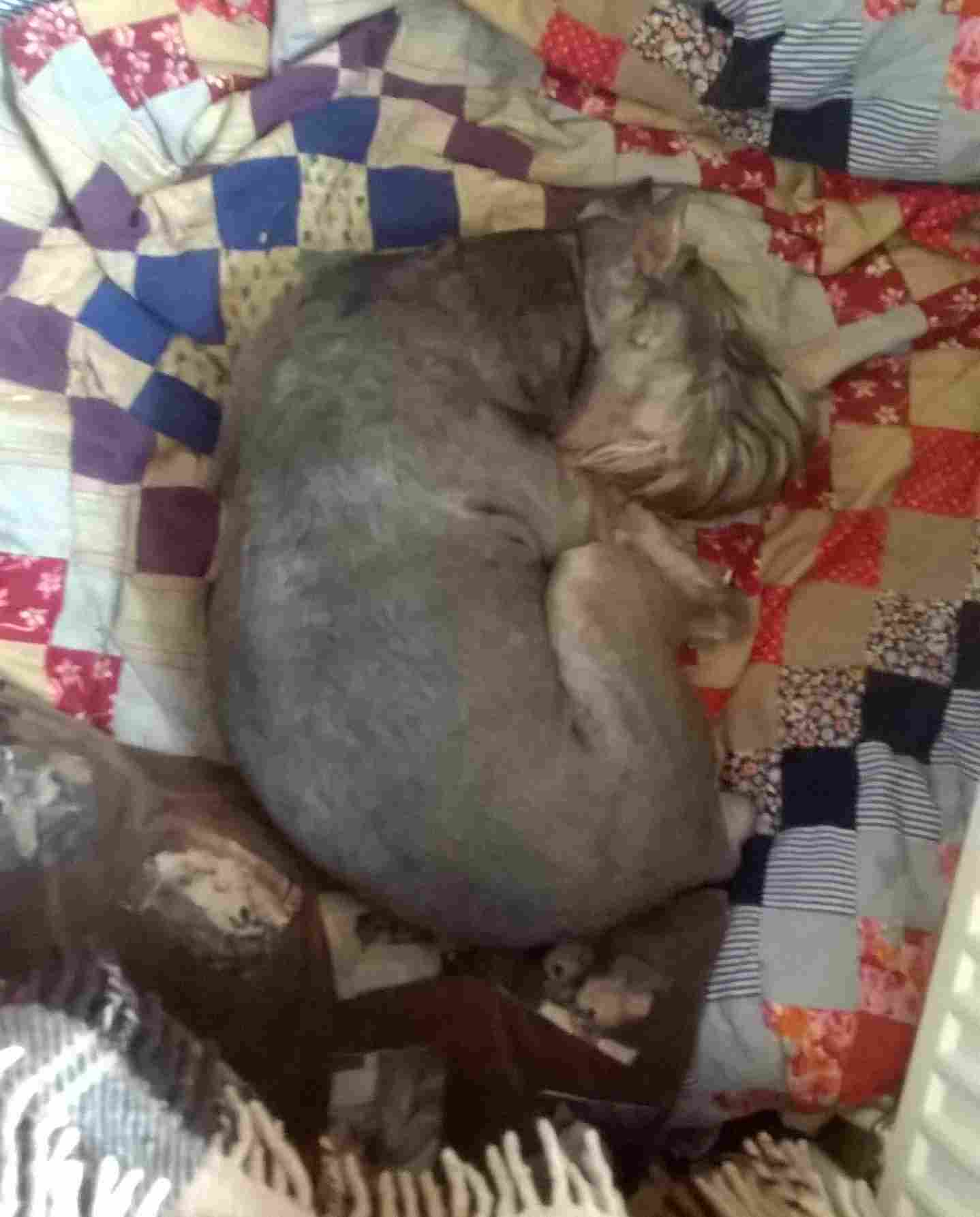 Очень достойная и уютная старость. Спит и спит..... за кем то гонится во сне)))))