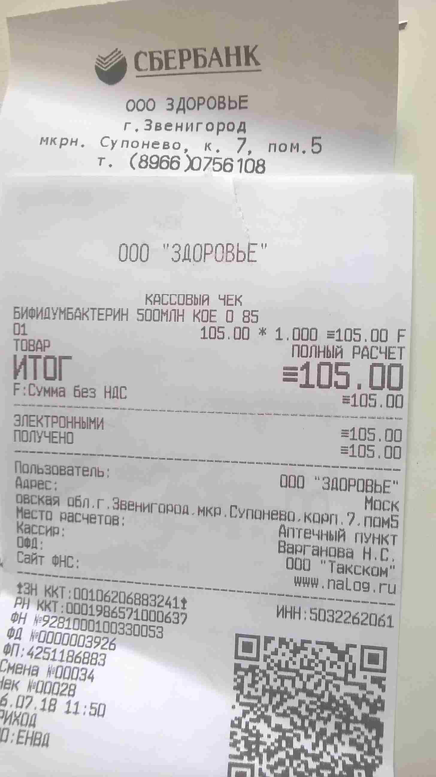Расход Бифидумбактерин (10 пакетов) - 105р