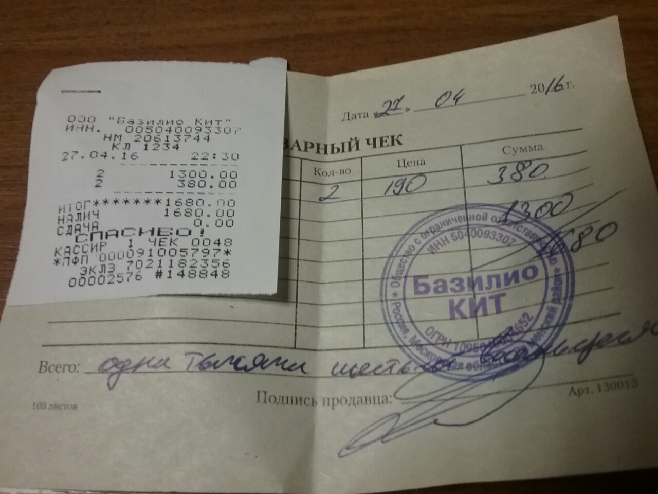 Квитанция, которая прислала Ирина для оплаты.