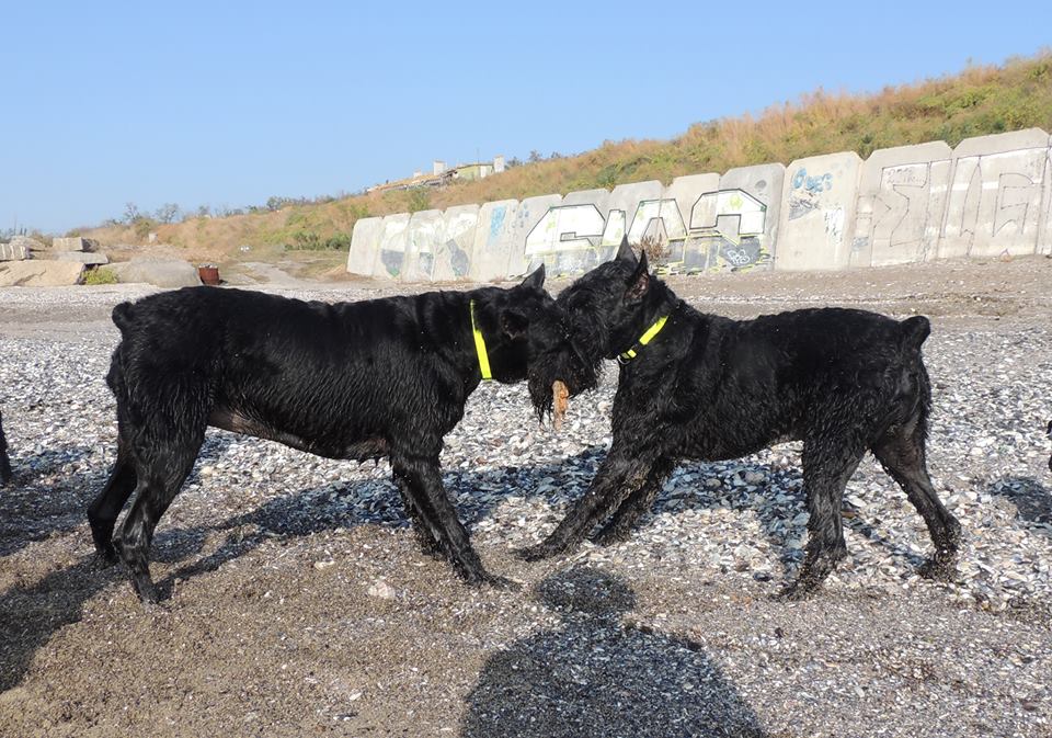 И тут подбегает НюраНана и начинают лупить овчарку(Нана била своим визгом).Семен включился и два ризена созвуковым сопровождением цверги начинают лупить овчарку.Я стою наблюдаю - мои в намордниках ну побьют немного зарвавшуюся молодежь.Овчарка с воплями упала хозяину в ноги.Мои отступили.И вдруг раздается душераздирающий визг "норвича".Она бежит в сторону и орет как недорезанная.Я не могу врубиться- -собаки то возле меня