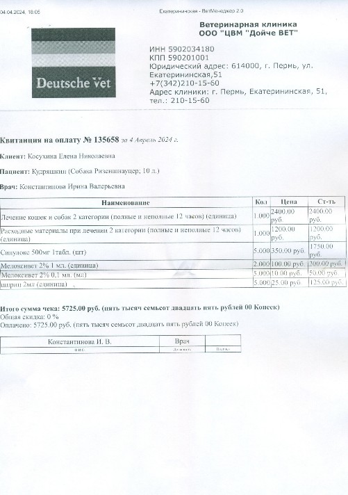 Завтра Елена еще купит синулокс и доксазозин. В ветаптеке больницы они дорогие, поэтому купит в аптеке.