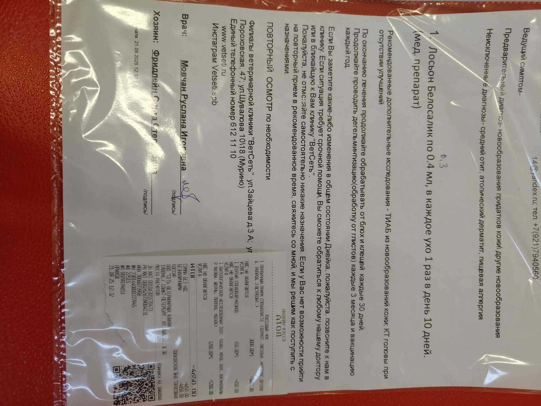 Ездили сегодня с Джейком к дерматологу, так как он оглох совсем и орет, не дает смотреть уши.
