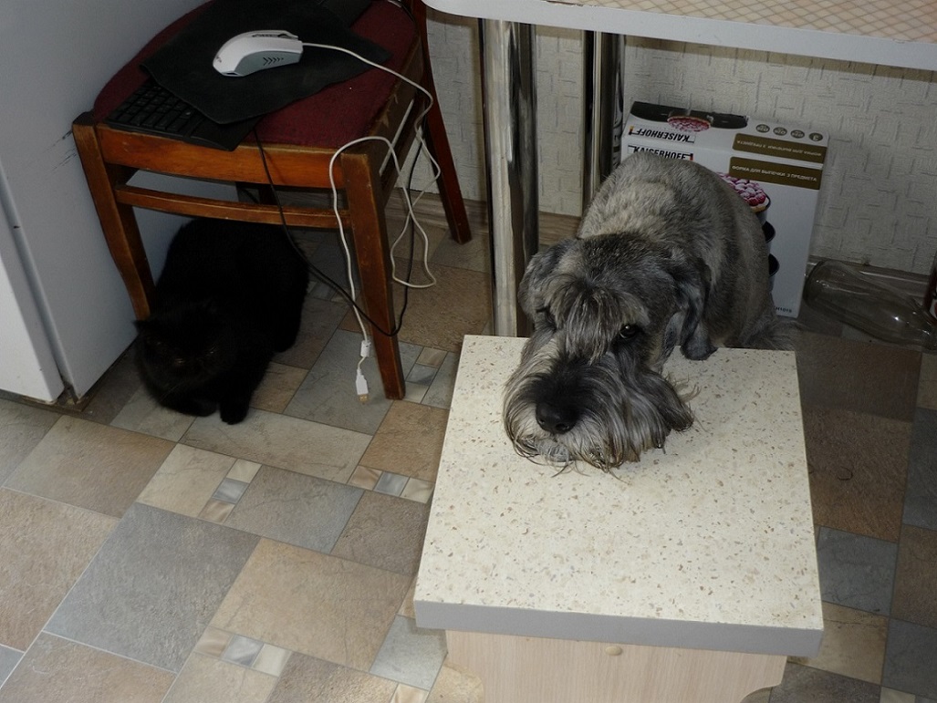 Приехал сын из Витебска, на практику и каникулы, решил взять Янчика сходить в гараж за картошкой... по правде, я не люблю туда ходить, поэтому собакин там никогда не был... все было отлично, пока шли на поводке, как только уже возле гаража спустил с поводка - Янчик развернулся - и домой... никакой реакции ни на команды, ни на вкусняшку... типа, хрен тебя знает, дядька, ты-то наездами бываешь, понимаешь, три дня с нами прожил - а вдруг решил меня отдать кому??? Вот знаменитая шнауцериная самостоятельность и соображалка))) сын дулся на собаку два дня))) А Янчику нравится с ним играться - дома))) правда, уже ходили меня встречать - по знакомому маршруту идет отлично))) вообще, конечно, любит гулять без поводка (кто ж этого не любит), но на команду "поводок" реагирует спокойно, ходит рядом идеально с поводком... обжился среди местных собак, маленьким позволяет все - и лаять на себя, и зубами лязгать, и даже терпит мелкие покусы - просто отходит, а вот с србаками, крупнее себя - лабрадорами, чау-чау - пытается доказать, что он больше и главнее))) хитрый, сначала раззнакомиться, войдет в доверие, а потом права давай качать))) а он-то уже свой, поэтому большие его наезды терпят, от драки уходят. Даже местные коболененависницы - старушка ротвейлерша и ее доча-метиска - приняли его как родственника))) вобщем, подлиза, этакий дипломат - втереться в доверие и возглавить эту банду))) кошек на улице воспринимает как этакий тренажер для бега - подкрасться, напугать, а потом - бежать, часто просто рядом - пока ЭТО на дерево не запрыгнет))) домашнего кота - облизать и покачать лапой))) а если увидел черного кота на улице - это всегда шок - это же наше, домашнее, маааам, ну давай домой заберем)))