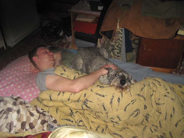 Мы на даче частенько так спим))) спина не позволяет спать на старом диване, а собаке такой кайф))) мальчишки молодцы, полная идиллия