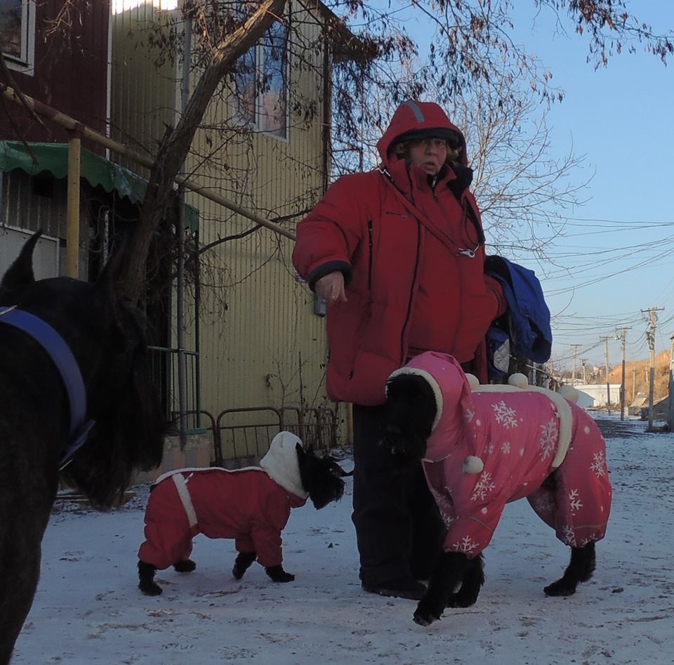 Сейчас у нас такое творится что каждая прогулка как экстрим.Я даже не беру на поводок болванов чтоб они меня не уронили.Так и шляются по гололеду