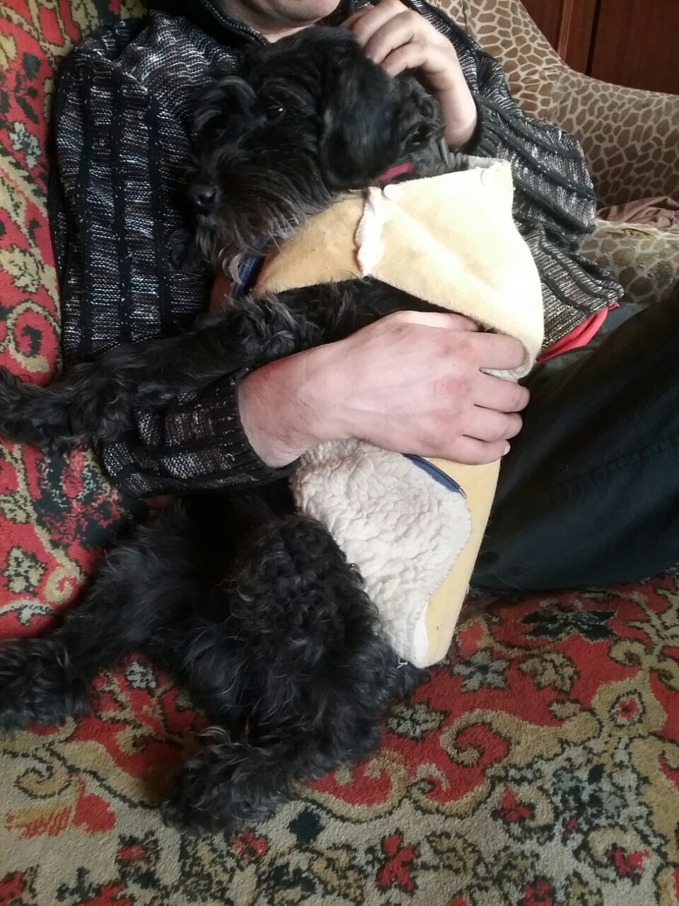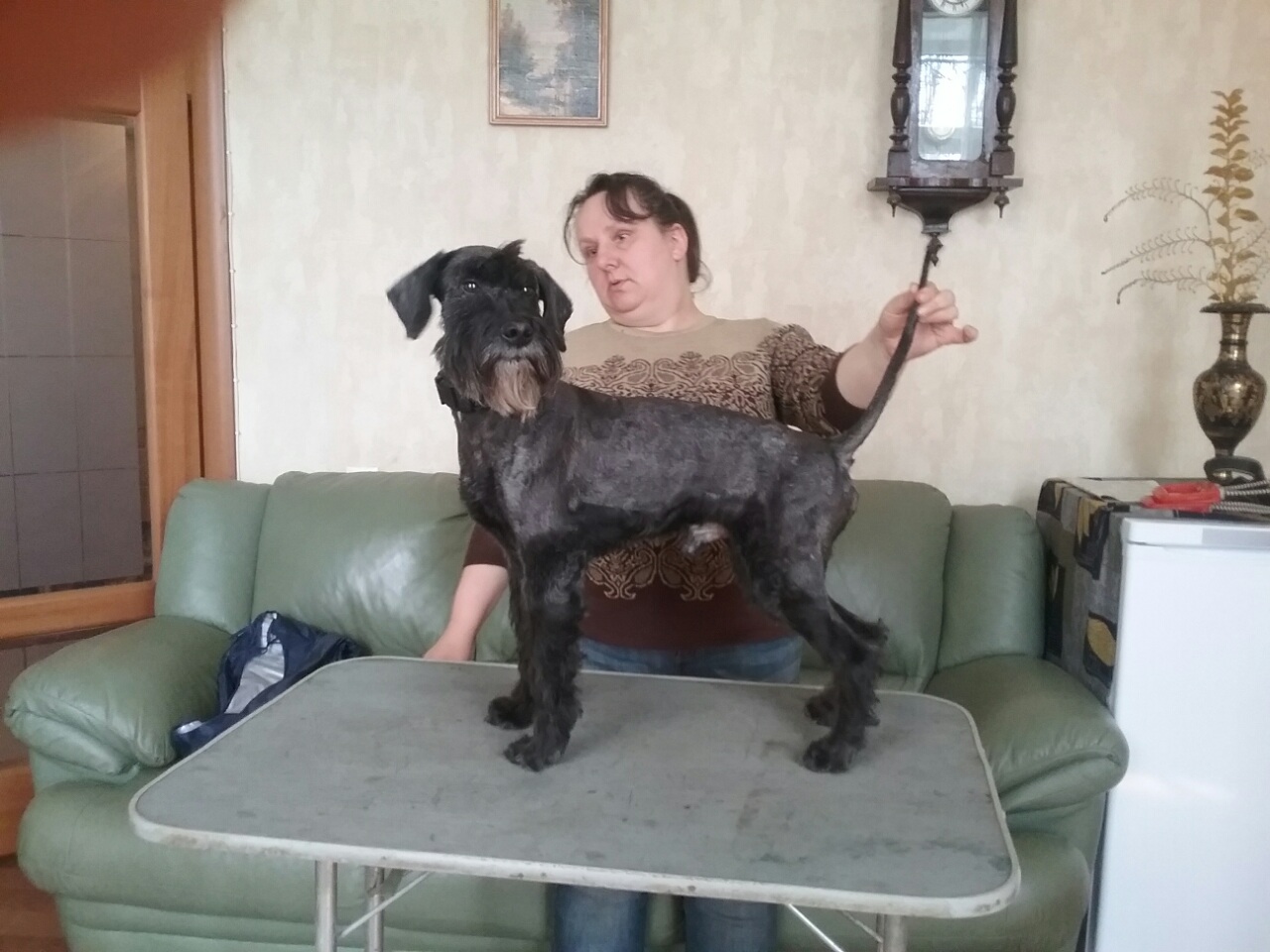 Упирался всеми частями тела!Спускать в подземный переход пришлось на себе,дрожал,как основый лист!В электричку заносила, выпрыгивал сам.К Ольге забежал сам , быстренько обнюхал все углы,освоился и достаточно спокойно давал себя щипать и стричь.В итоге у нас получился доходяжный миттель-недоросток.Для сравнения выпустили Ольгиного цверга (он у неё крупненький)-одного роста,но Макся более вытянутый по корпусу.Более длинная морда.Все тело в шрамах,весь покусанный.На спине скорее не липома,,а неудачно заживший укус.Намека на предыдущие стрижки никакого .Но молодец,экзекуцию выдержал стойко.Огрызался когда шерсть отщипывать стали и на жужжащую машинку. После стрижки обнажились новые проблемки.Надо будет ещё раз сходить к ветеринару и целенаправленно проверить простату!, как-бы там чего не выросло. Фото попрошу девочек выложить,сама с планшета не умею.Ольге большое спасибо!Она профессиональным взглядом сразу решила проблему породной принадлежности.Очень близкий метис миттельшнауцера!Но недокормленный,поэтому маленький- не дорос.За стрижку ,как и договаривались отдала 1000 руб