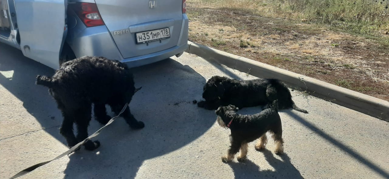 Алла терпеливо нас ждёт... Домчались, в итоге вместо 10 утра, мы были на месте в 11:30. Погуляли собак, познакомили их и Алла повезла Гришу в новую жизнь..