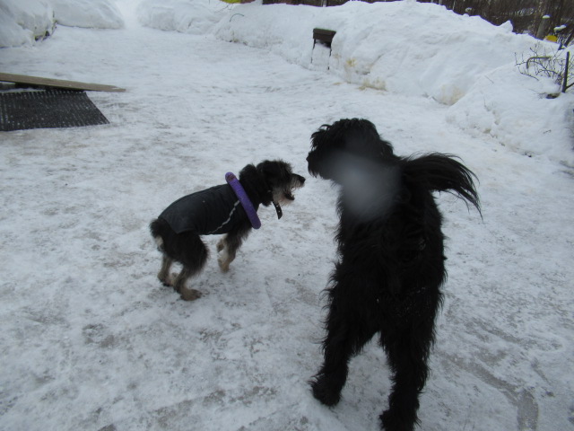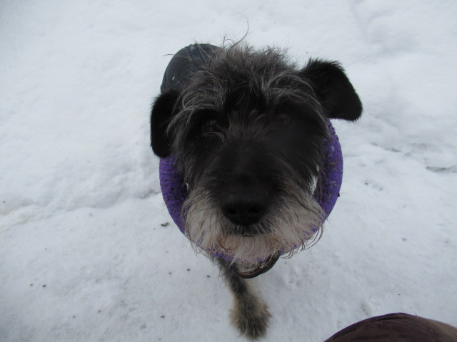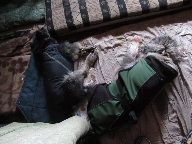 У меня-то свои резоны-на одетой собаке меньше снега попадёт в дом.