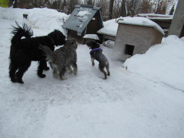 Сегодняшнее утро- выпускаю собак- Тёма вылетает как из пушки. Генералу одеваю мундирчик...генералу он не нужен, но он милостиво позволяет мне его одеть. Шкиперу нужно подтверждение что я пойду следом-"сейчас иду!". А Лёшик сидит и не идёт...?????Лёш, гулять идём!- сидит...???? Ну ... все одно выведу...гулять -то надо, но сначала- беру жилетку (на фотографиях её видно-тёмно-синяя - надеваю на Лёшика , пока одеваю Лёшик пытается достать меня языком. Оделись...и Лёшик сам выскакивает на улицу!?