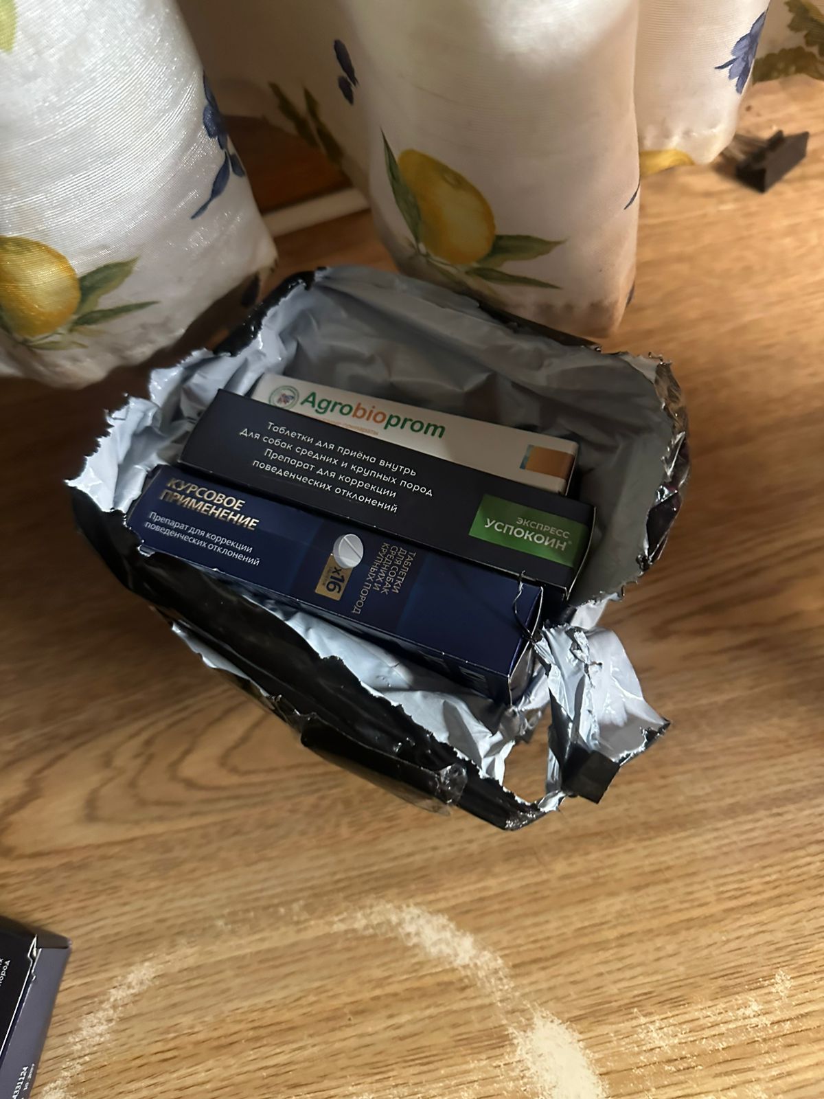 2 пакета вкусняшек ( похоже на легкое) передано сегодня для Боша