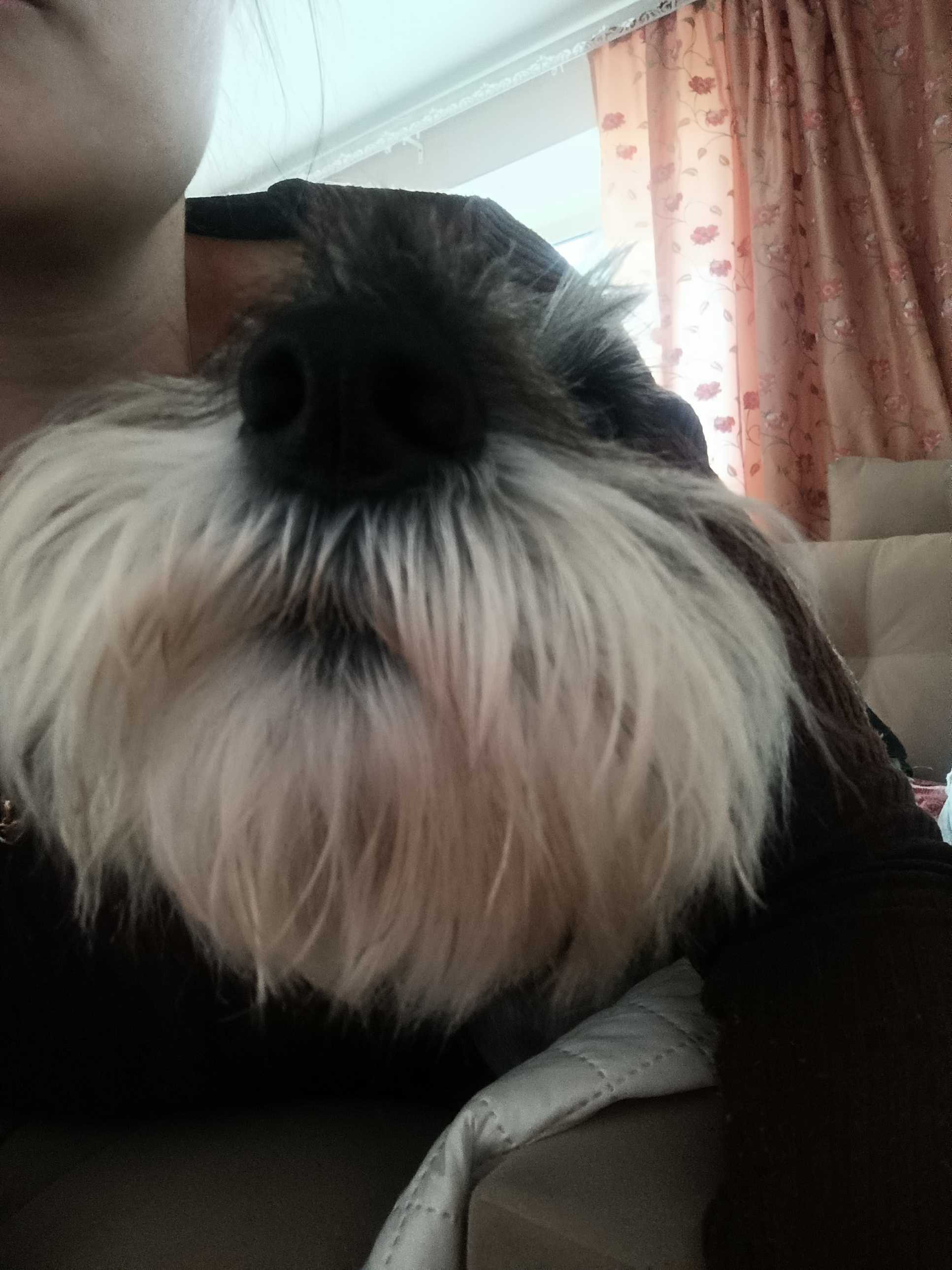 В благодарность за печенье, между прочим, из печенки, эта серая жаба кусается, когда ей бороду пытаются вычесать.