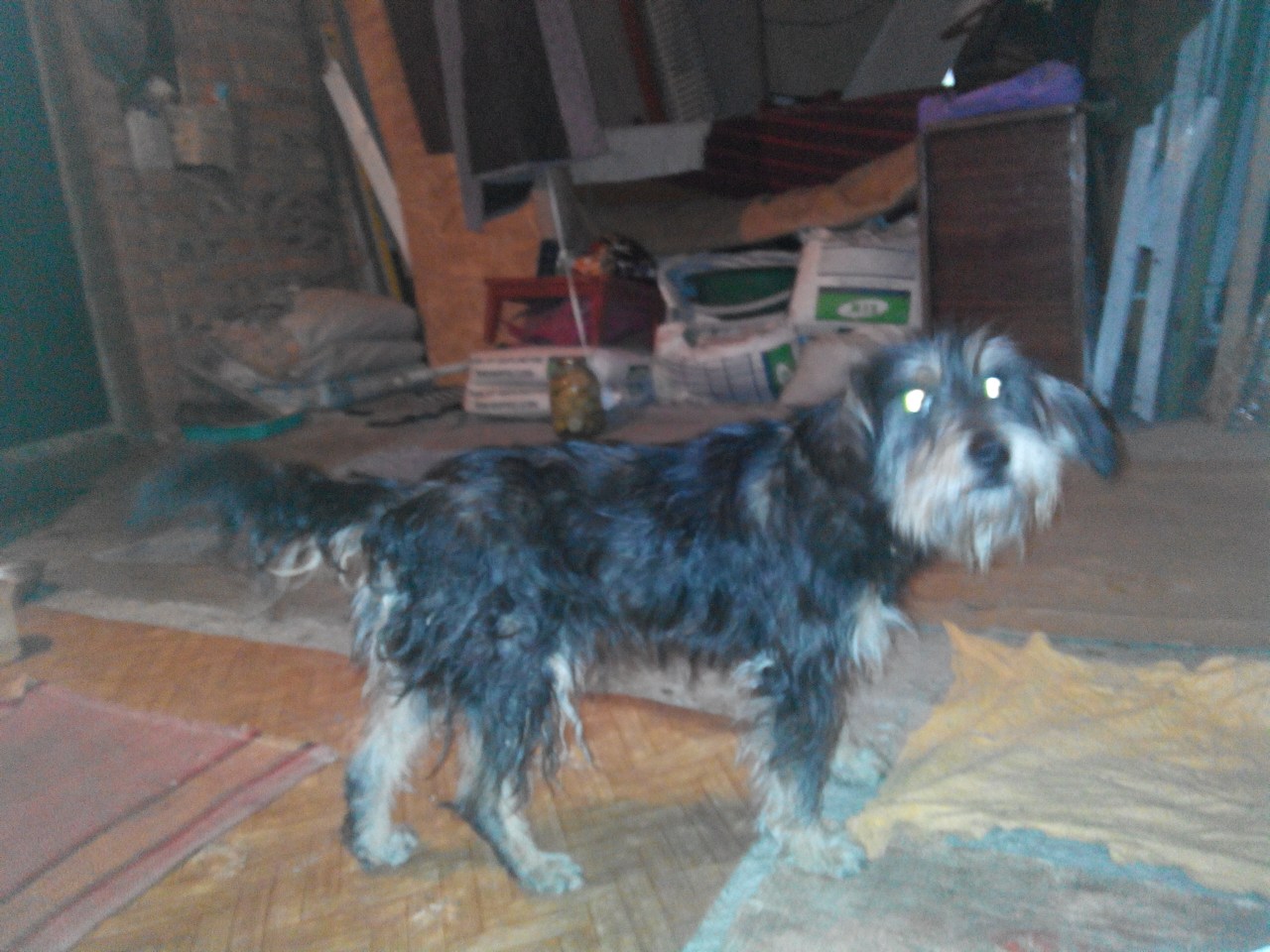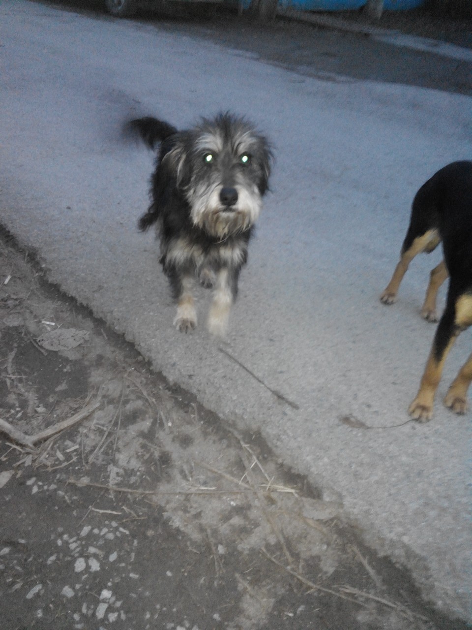 Здравствуйте, вот подобрала этого пацана, лапка задняя болит у него. Он грязный, вонючий, в воскресенье поедем стричься и мыться. Спокойно дался в руки. Гулена в собачьей свадьбе был, несу его на руках, а его невесты следом бегут. Яша сейчас у Светы, пришел- стеснялся. Но покушал.) роза для порядку облаяла его, а он спокойный, а то, один в таком цветнике девичьем) худенький и легонький.. Он не злой, добряк)