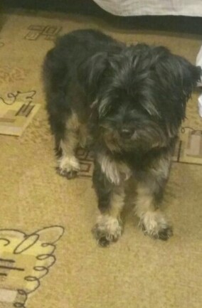 Найдена сука цвергшнауцера окраса черная с серебром. На глазу имеется бельмо. Фото собаки пришлют вечером. Клеймо посмотрят. Говорят , что старенькая в районе 11 лет...