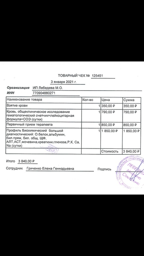 Финотчет по анализам